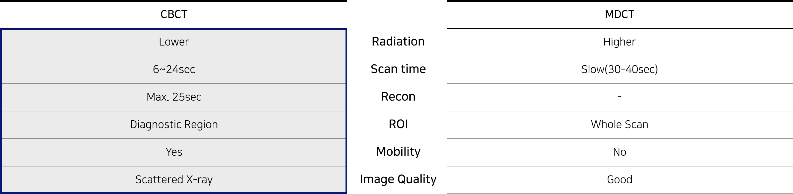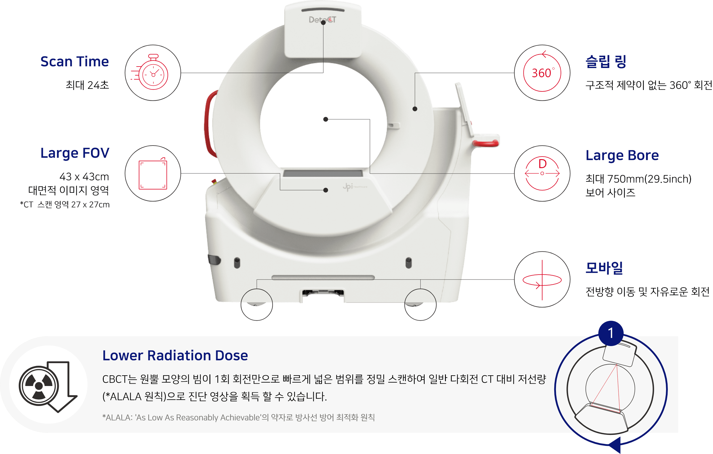 일반 CT 대비 컴팩트한 사이즈와 영구적으로 설치할 필요가 없는 이동형으로 전방향 주행은 물론