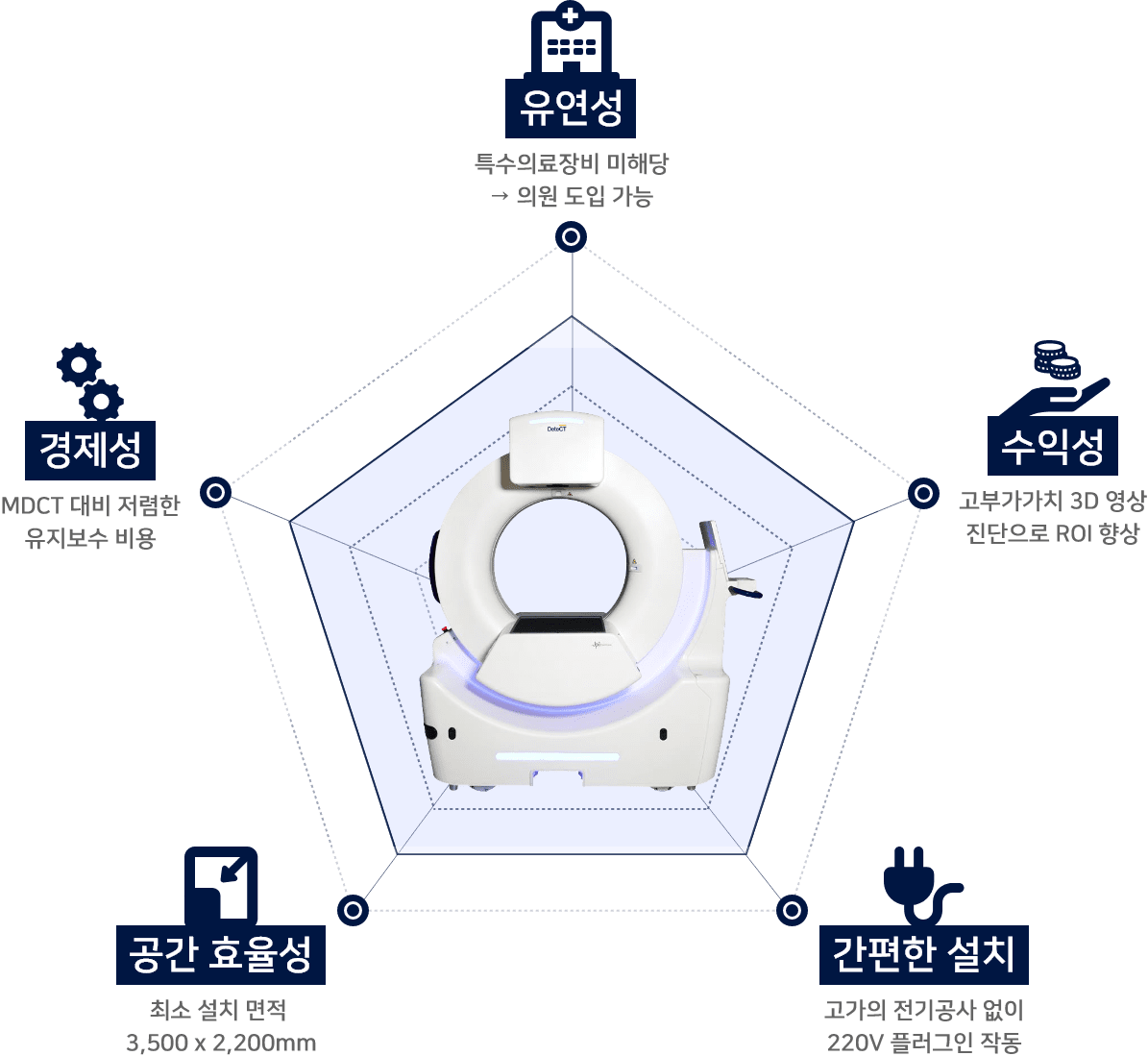 DeteCT의 회전식 엑스레이 튜브는 안정적인 출력, 연속 촬영이 가능하며 고정식 대비 긴 수명을 보장합니다.